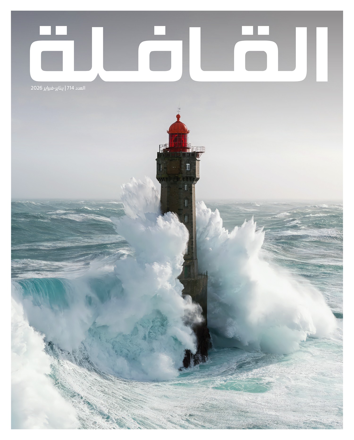 غلاف عدد (يناير-فبراير 2026م)، يعرض صورة من ملف العدد "المنارة"، وتظهر منارة "لا جومين"، على الساحل الغربي لفرنسا، التُُقطت عام 2016 م، خلال عاصفة وصل خلالها ارتفاع الأمواج لأكثر من 15 مترًًا.