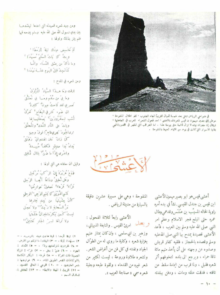 في عددها الأول الصادر في شهر صفر عام 1373هـ، أكتوبر 1953م، نشرت القافلة مقالة عن الأعشى تضمَّنت إشارة وصورة فوتوغرافية لبقايا سور منفوحة بالرياض.