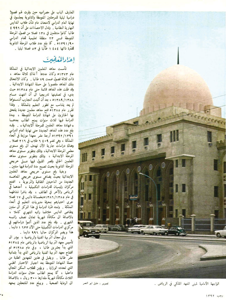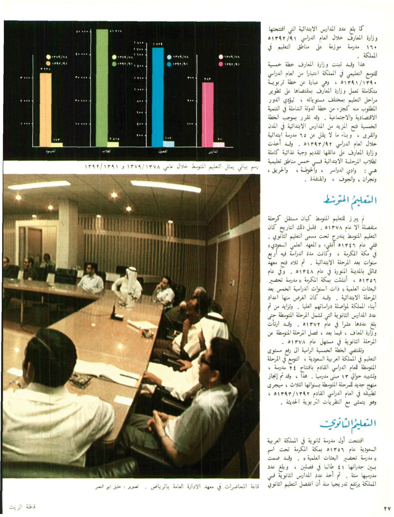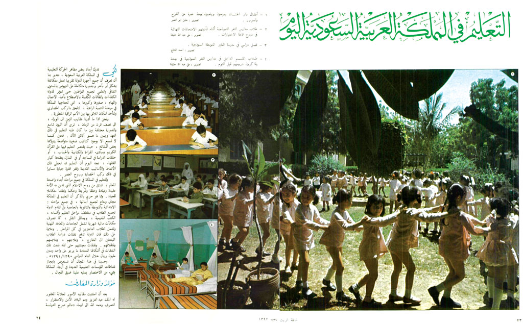 في عددها الصادر في شهر رجب عام 1392هـ الموافق أغسطس/سبتمبر 1972م، نشرت القافلة سلسلة مقالات خصَّصتها للتعليم في المملكة العربية السعودية، أولها مقالة بقلم وزير المعارف معالي الأستاذ حسن بن عبدالله ابن حسن آل الشيخ، تحت عنوان “تاريخ الحركة التعليمية في المملكة العربية السعودية منذ توحُّد أجزائها”، كما نشرت المجلة مجريات ندوة تحت عنوان “المناهج التعليمية وأساليب التدريس الحديثة وأثرها على المجتمع” وفي ثالثها تقريراً تحت عنوان “التعليم في المملكة العربية السعودية اليوم” حازت كلها أكثر من ثلثي صفحات المجلة. وهنا بعضاً مما جاء في التقرير الأخير.