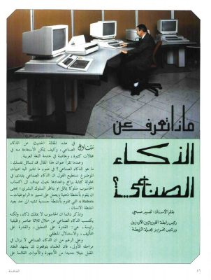 في عددها الصادر في شهر شعبان 1410هـ الموافق فبراير/مارس 1990م تناولت القافلة موضوع الذكاء الاصطناعي وتطبيقاته المستقبلية وأفق تطوُّره في مقال من أربع صفحات بقلم الأستاذ تيسير صبحي رئيس رابطة الفيزيائين الأردنيين. واللافت في هذا المقال هو ما يتكشَّف عنه من اهتمام القافلة منذ ذلك الوقت المبكِّر باستقراء تداعيات الذكاء الاصطناعي على اللغة العربية من فوائد وتحديات. وهنا بعض ما جاء فيه:
