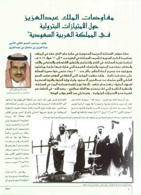 تمثل مفاوضات الملك عبدالعزيز – يرحمه الله – مع شركات البترول التي سعت قبل قرن من الزمن إلى التنقيب عن الزيت في المملكة، واحدًا من أهم الفصول في تاريخ المنطقة الحديث، إن لم يكن أهمها على الإطلاق، لما كان لسير هذه المفاوضات من نتائج لاحقة على مسار التنمية في المملكة وحتى على مسار الاقتصاد العالمي. وأبرز من أرّخوا لهذه المفاوضات كان صاحب السمو الملكي الأمير عبدالعزيز بن سلمان آل سعود في الورقة التي أعدّها لمؤتمر “المملكة العربية السعودية في مائة عام”. وفيما يأتي بعض أبرز ما جاء فيها، علمًا أن بإمكان القرّاء الاطلاع على الورقة بتوسع أكبر على الموقع الإلكتروني للقافلة.