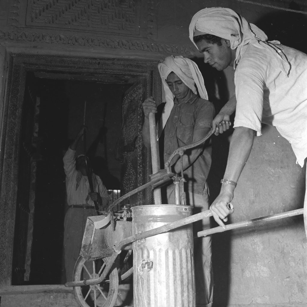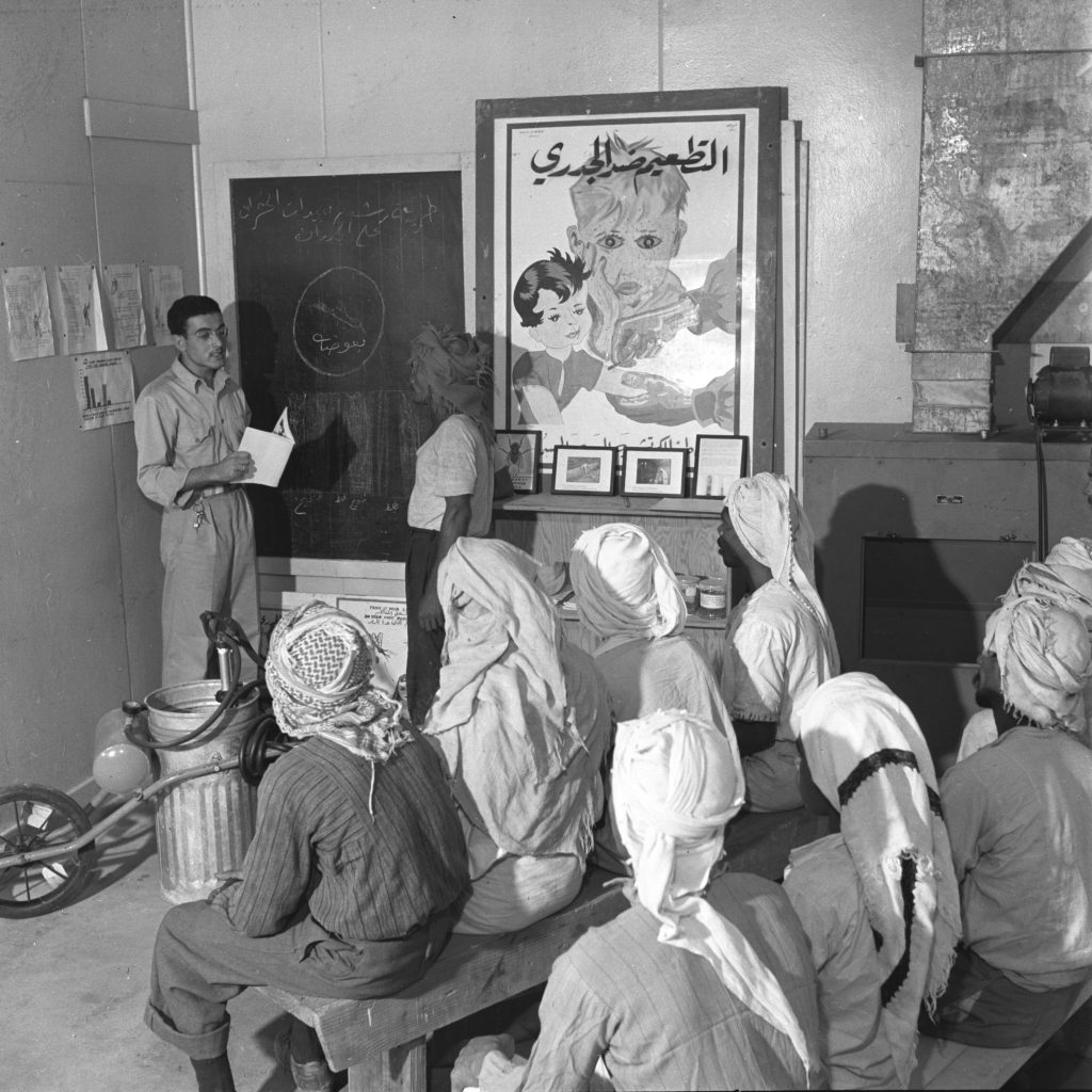 وتقوم بهذه الحملة في هذا العام، كما قامت بها في الأعوام الخمسة الماضية، إدارة الطب الوقائي التابعة لشركة الزيت العربية الأميركية، بالتعاون مع الحكومة السعودية. ففي حين تتولى الشركة الإشراف على هذه الحملة، بالنيابة عن حكومة صاحب الجلالة، وتحضير المعدات الضرورية والكميات التي تفي بالحاجة من الـ د.د.ت، وتلزيم العمليات إلى بعض المقاولين الخبيرين، وتقديم ما يلزم من المساعدات الفنية والخدمات العامة كالنقليات وصيانة المعدات وتصليحها، تدفع الحكومة نفقات هذه الحملة.