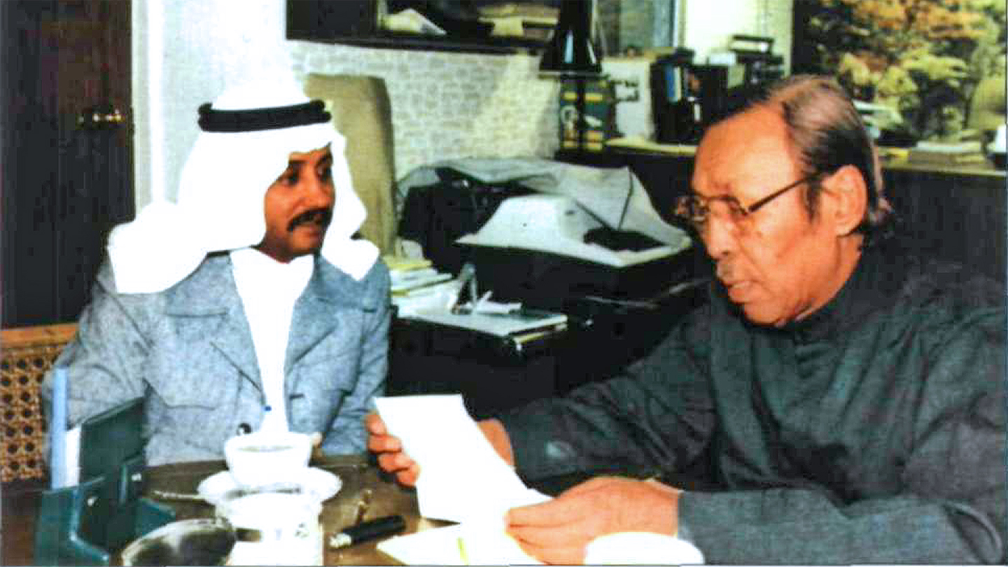 عزيز ضياء مع علي الدميني أثناء الحوار.