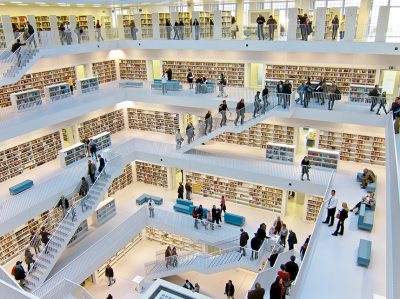 وقد يكون المثال الأجمل على ذلك مكتبة سياتل العامة في الولايات المتحدة الأمريكية التي بنيت في العام 2004م، حيث اعتبر بناؤها من المباني الأكثر ابتكاراً وثورية في العصر الحديث. وقد اشتهرت هذه المكتبة بغرف القراءة ذات الأسقف الزجاجية التي تجذب إليها الأشخاص من مختلف الأعمار والفئات المجتمعية، كما يمكن للناظر من الخارج رؤية حركة المصاعد الكهربائية في داخلها، الأمر الذي من شأنه أن يجذب المارة إليها، تماماً مثلما تفعل المراكز التجارية ومراكز التسوق.
