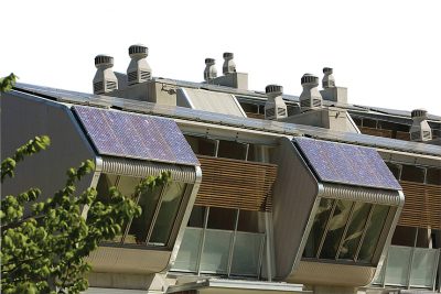 للوصول إلى المبنى المكتفي ذاتياً بالطاقة، يقوم المصممون باستخدام أحدث المنتجات من مكونات البناء، ومنها: