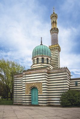 قد يكون مقبولاً أن تقام مبانٍ على شكل مسجد في حديقة ملكية، إظهاراً للتنوع الثقافي، لكن الخيال الأوروبي جنح بعض الشيء حين أقيم مبنى ثالثٌ على شكل مسجد في مدينة بوتسدام عام 1842م، لإخفاء ماكينة تعمل بالبخار، ولتستخدم المئذنة كمدخنة، ولم يكن يستخدم للصلاة على أي حال.