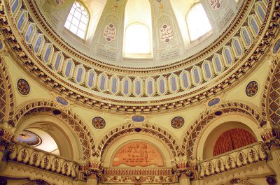 ومرَّ اليهود بتجربة مشابهة للمسلمين في بناء معابدهم، التي حرصوا في البداية على ربطها بمنبع ديانتهم، فأنشأوها على النمط الشرقي من قبابٍ وأعمدة تشبه مآذن المساجد، كما يظهر في معابد برلين وبودابست.