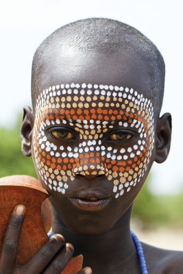 في إفريقيا يتزيَّن الرجال والنساء بحلي كثيرة، وملابس مزركشة، ويتحمَّلون عذابات هائلة عند كي جلودهم حتى يحصلوا على أشكال مميزة لهم، وتقوم نساء إحدى قبائل إثيوبيا بوضع أقراص معدنية ضخمة في أفواههن، تجعل الشفاه تمتد وتمتد لتصبح بمقاييس الطبق، ويرى الناس هناك أنهم أصبحوا بذلك أجمل، وفي الصين القديمة كانت الفتيات يتعرَّضن لعذاب من نوع مختلف، وهو أن توضع أقدامهن في أحذية ضيقة للغاية، حتى لا تنمو وتظل صغيرة الحجم؛ لأن ذلك رمز للجمال. وفي ميانمار وفيتنام تعيش قبيلة في الجبال، ترتدي الفتيات هناك منذ الصغر حلقات معدنية حول رقابهن لتصبح طويلة، فالزرافة هي مثلهن الأعلى.