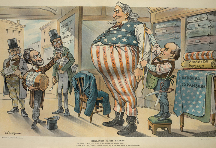 أما على الضفة الأخرى للأطلسي، فتذكر المراجع التاريخية أن الكاريكاتير بدأ في نيويورك في نهاية القرن التاسع عشر على يد ثلاثة ناشرين، هم: جوزيف بوليتزر، ووليم باندولف، وجيمس كوردون. وقد أصدر هؤلاء ثلاث مجلات أسبوعية ملوَّنة مختصة برسوم الفكاهة والحكايات المصورة، وكانت موجَّهة في البداية إلى المهاجرين الذين لا يتقنون اللغة الإنجليزية جيداً، وقد نجحت هذه المجلات نجاحاً كبيراً وازدادت شعبيتها. من هنا يُعلي الباحثون من دور الكاريكاتير في ترسيخ “الهوية الأمريكية”، فقد لعب دوراً في إدماج المهاجرين في الثقافة الأمريكية. ومن بين هذه الشخصيات الثلاث، كان الناشر جوزيف بوليتزر الذي استحدث جائزة تسمى باسمه (جائزة بوليتزر للإنجازات في مجالات الصحافة والأدب والموسيقى والفن)، الأشهر على الإطلاق.