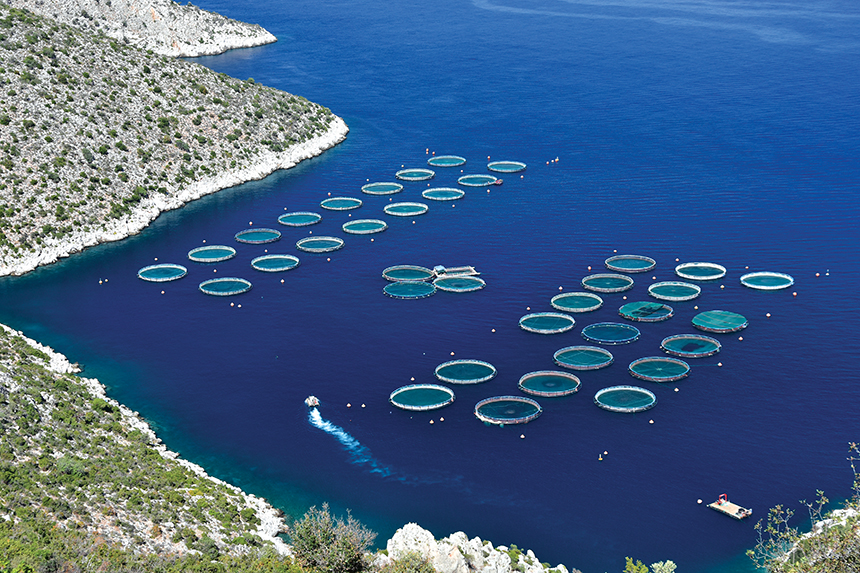 أزمة العلف السمكي، على الرغم من أنه تتم تربية بعض أنواع الأسماك المستزرعة اعتماداً على أغذية نباتية، إلا أن عديداً منها، وخاصة الأنواع المدجنة حديثاً مثل السلمون، تعتمد على نظام غذائي لحمي مؤلف من كميات كبيرة من الأسماك البرية التي تكون بمثابة العلف. مما يعني أن استزراع كمية معينة من السلمون تتطلَّب كمية من الأسماك الأخرى. ويطلق العلماء على هذا المفهوم معدَّل السمك الداخل والخارج (Fish-In-Fish-Out)، وهو معدّل يحسب نسبة الغذاء الذي يستهلكه الحيوان المستزرع مقابل الغذاء المستخلص منه. ففي بعض أنواع الأسماك قد يصل المعدل إلى 4 كيلوغرامات من السمك البري مقابل كيلوغرام واحد فقط من السمك المستزرع، مما يعني أنه كلما زادت معدلات استزراع هذه الأسماك تنامى الضغط على البيئات التي تعيش فيها الأسماك البرية التي تتغذى عليها. الأمر الذي يشكِّل خطراً على التوازن البيئي للحياة الفطرية البحرية، كما يطرح تساؤلات حول مدى قابلية هذا النوع من الاستزراع للاستدامة. وحتى اليوم، يشكِّل العلف السمكي %20 من إجمالي الأسماك التي يتم اصطيادها حول العالم.
