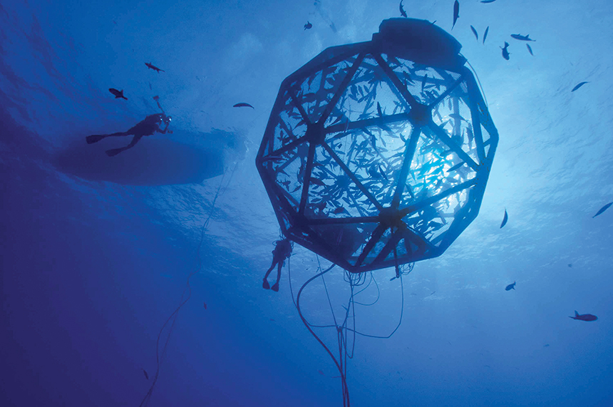 لكن ما يميز هذه الكبسولات هو شكلها الهندسي الجيوديسي الذي يشبه الكرة؛ حيث تستند الكبسولات إلى شبكة من المثلثات المتلاصقة توزع الضغط عبر الهيكل الإنشائي مما يجعلها تتحمل قوى وأوزاناً عالية، فلا تتعرَّض للالتواء أو التقوس سواء بسبب التيارات البحرية القوية أو الأمواج العاتية. كما تجعلها عصية على الحيوانات البحرية المفترسة كالقروش وأسود البحر. والجميل أن هذه الكبسولات البحرية أصبحت تتحوَّل مع الوقت إلى بيئة خصبة لأشكال كثيرة من الحياة الفطرية البحرية تماماً كالشعب المرجانية الاصطناعية.