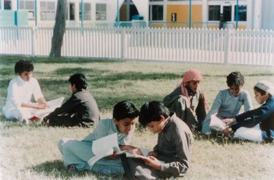 وما زلت أتذكر توقي وحسرتي في اليوم الدراسي الأول، في الزِّي المدرسي؛ القميص الأبيض والبنطال الرمادي، مفروق الشَّعر مثل حمد تماماً. أتلقَّفُ كتاب اللغة العربية مستنكراً غلافه الأزرق الدَّاكن: “هذا الغلاف لا يشبه الذي أعرف!”. رحت أُقلِّب أوراقه باحثاً عن الدَّرس الأوَّل، لا رسوم لحمد، كان الكتاب مزوَّداً بصور فوتوغرافية لمائدة طعام. راح المعلِّم يُلقِّننا العبارة الأولى الجديدة في منهج اللغة العربية: “أنا آكل وأشربُ لأعيش وأكبر!”.