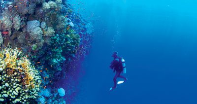 ارتدى الجميع ملابس الغوص، وانقسمنا إلى مجموعتين. وما هي إلا دقائق حتى بات الجميع تحت سطح الماء. وفور الغوص وتحقيق التوازن.. تبدأ متعة الرحلة.