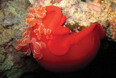 رحنا نلتقط الصور لأغرب الكائنات البحرية، ومنها “الحورية الراقصة الإسبانية”، وهي كائن رخوي رائع، يمكن مشاهدته في الغوص أثناء الليل، وأحياناً في النهار، وهو من الكائنات المميزة في البحر الأحمر ويوجد منه نحو 20 نوعاً.