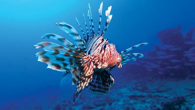 كما شاهدنا أسماك “الأسد” وسمكة “الديك”، وهي مجموعة أخرى من عائلة الأسماك الصخرية، ويمكن تمييزها بسهولة عن طريق ألوانها الجذابة التي تمثل أيضاً خطورة عالية على حياة الإنسان، أما سمكة “الشيطان” فتشبه الأسماك الصخرية وتجيد التخفي بصورة مذهلة، ويصل طولها إلى 30 سنتيمتراً وهي شديدة السمية، لكنها أقل خطورة من السمكة الصخرية.