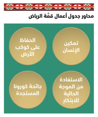 جدول أعمال قمة الرياض حافل وطموح إلى حد كبير. فتحت عنوان “اغتنام فرص القرن الحادي والعشرين للجميع” تركِّز القمة على أربعة محاور رئيسة: