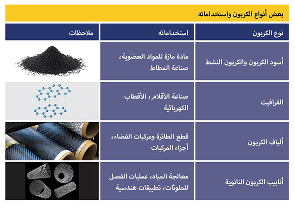 ومن المعروف أن ألياف الكربون هي صلبة أكثر من الفولاذ بعدَّة أضعاف وأخف منه بعدَّة أضعاف أيضاً. وتُعدُّ هذه الخاصية حيوية جداً للطائرات، وقد أحدثت بالفعل ثورة في صناعتها.