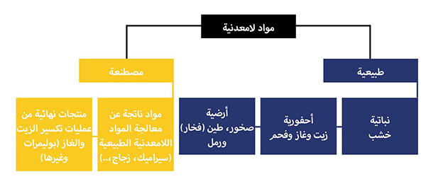 يوضِّح الشكل التالي تصنيف المواد اللامعدنية