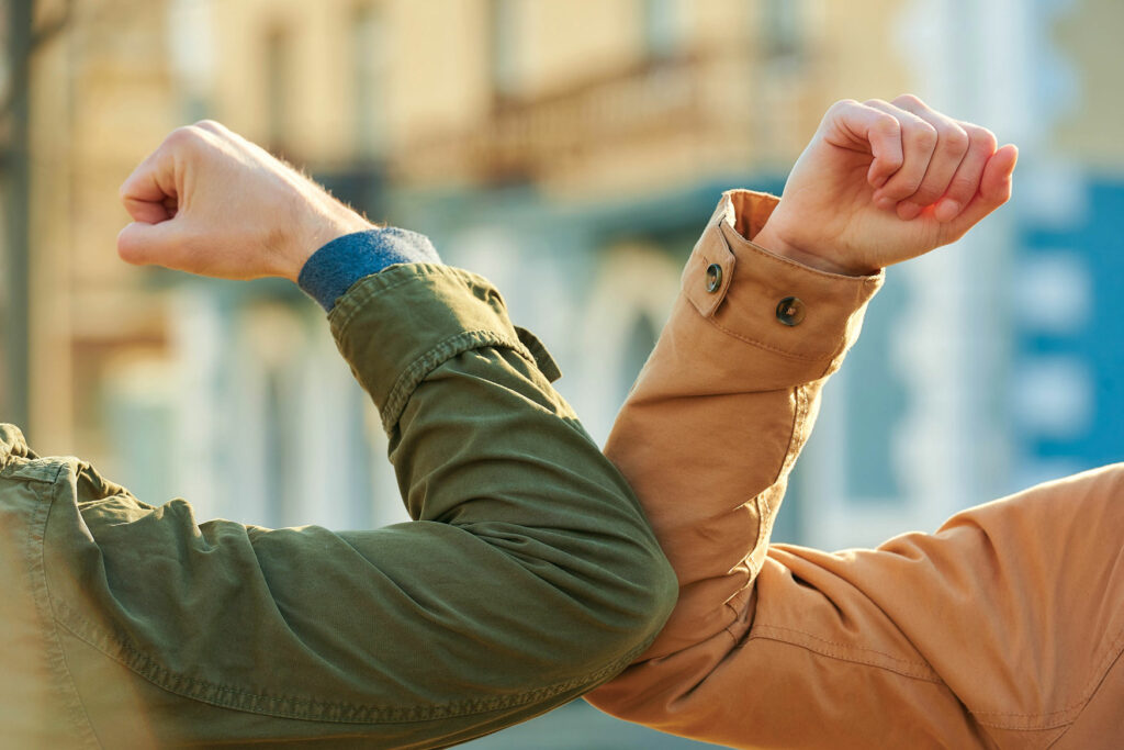 ولما فرض علينا التباعد الاجتماعي العزوف عن المصافحة، ولأننا مخلوقات لا تسير إلا وفق طقوس اجتماعية معيَّنة، وربما لأننا نريد أيضاً أن نعبِّر عن “نوايا القلب الحسنة”، كان لا بد لنا في زمن الكورونا من ارتجال تحيات جديدة، فبرزت تحية لمس الكوع بالكوع كتحية جديدة في البداية، ولكنها مثلها مثل المصافحة لم تكن محمودة من قبل القيّمين على منظمة الصحة العالمية، لأنها لا تزال تجبر الناس على ملامسة بعضهم الآخر والمنطق نفسه ينطبق على ضربة القبضة أيضاً، وقد تكون التحية الأنسب هي تلك التي طورها مواطنو مدينة ووهان الصينية، حيث بدأ الوباء، والتي تعرف بـ “تحية ووهان” والتي تترجم بتلامس القدمين كوسيلة للتحية.