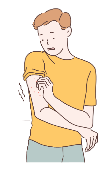 وتنطوي الحكة بشكل عام على تنشيط مستقبلات الخلايا العصبية المتخصِّصة، التي تسمى الألياف سي (C). وتتشابه هذه الألياف مع تلك المرتبطة بإحساس الألم، ولكنها متميزة من الناحية الوظيفية وتنقل إحساس الحكة فقط. وعند تحفيزها على سطح الجلد، تحمل هذه الألياف إشارات بواسطة العصب إلى النخاع الشوكي وإلى الدماغ، حيث تتم معالجتها، مما يولِّد رد فعل خدش أو فرك. بعد ذلك يتداخل الخدش والفرك مع الأحاسيس الناشئة عن المستقبلات عن طريق تحفيز مستقبلات الألم واللمس المختلفة في المناطق نفسها.