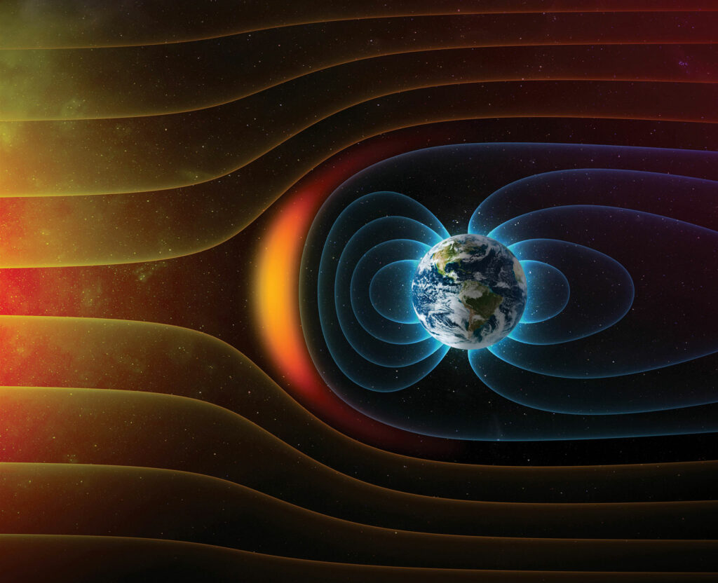 للمجال المغناطيسي أهمية قصوى للحياة على الأرض، لأنه يصد معظم الرياح الشمسية، التي تعرِّي جزيئاتها المشحونة طبقة الأوزون التي تحمي الأرض من الأشعة فوق البنفسجية الضارة.