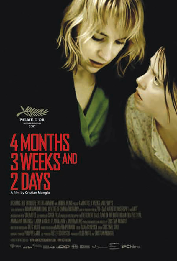 فِلْم “4 أشهر، 3 أسابيع، ويومان” لم أشاهده سوى مرَّة واحدة، رغم أن تكرار المشاهدة من الأمور التي أحرص على ممارستها. إلا أنها كانت مرةً كافية، وربما لا يفترض بها أن تكون أكثر من ذلك. كانت تجربة مريعة، ما زلت حتى هذه اللحظة، وبعد مرور أكثر من عشر سنوات، أرتعد لمجرد استرجاع بعض المشاهد أو الأصوات التي علقت معي، وستبقى كذلك زمناً طويلاً على ما يبدو.