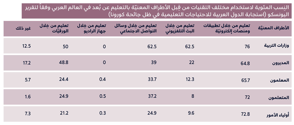 وليس التفاوت الكبير في توفير الإنترنت، هو التحدي الأوحد، إذ يُضاف إليه أن نسبة كبيرة من المتعلِّمين، خاصة في البلدان النامية، ما زالوا بحاجة إلى تعليم مهارات أساسية تتعلَّق بالرقمنة، والتعامل مع أدوات التعليم عن بُعد، لتحقيق الاستفادة المرجوة منه. كما أن كثيراً منهم ينظُرون بريبة إلى جدوى هذا التعليم، ويعدّون التعليم وجهاً لوجه هو التعليم الأفضل لهم، ويُشاركهم في ذلك أولياء أمورهم.