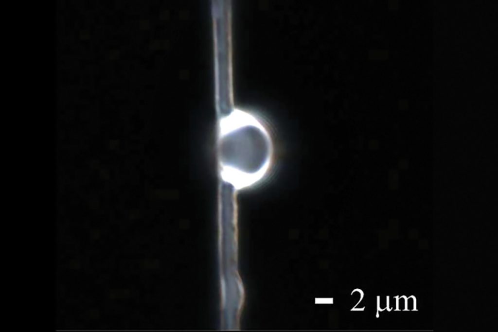 حين يَشِعُّ ضوء من خلال عدسة بهذا الحجم، تصدر عنه حزمة ضوء تسمّى دفقاً ضوئياً نانوياً (photonic nanojet)، وهي حزمة ضوئية رقيقة للغاية، يمكن تركيزها على مسافات مختلفة من العدسة. إن مقدار الراتنج الذي يُنَقَّط على الخيط وطول الوقت الذي يُترَك فيه قبل خبزه في فرن الأشعة فوق البنفسجية، يحدِّدان حجم العدسة وشكلها، وكذلك طريقة تركيزها للضوء. وقد تصرَّف الباحثون في تغيير هذه الحيثيات، من أجل إنتاج عدسات منوَّعة لأغراض مختلفة. فمثل هذه العدسات يمكن استخدامها لالتقاط صور لأشياء في منتهى الصغر، على نحو لا يُصَدَّق، مثل الفيروسات. والطبيعة غير السامة التي تتميز بها المواد المصنوعة منها العدسات، تتيح حقنها في داخل الأجسام الحيّة بأمان، لالتقاط صور مفصَّلة للنسيج البيولوجي.