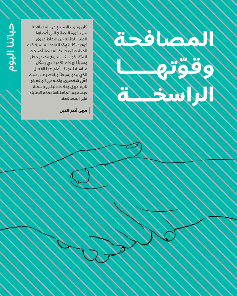 ورأى سلمان السبيعي أن المقالات التي تنشر في قسم حياتنا اليوم مهمة ومفيدة للمجتمع، إذ إنه قرأ ما نُشر في عدد يونيو/ أغسطس 2020م عن المصافحة. وأكد أننا عربياً لا نستطيع الترحيب إلا من خلال المصافحة. ومع انتشار وباء كوفيد19-، أثبتت الدراسات العلمية والطبية أن المصافحة ناقلة للعدوى والوباء، لذا تعلَّمنا الاكتفاء بالسلام والتحية من دون المصافحة، “ومثل هذه المقالات تختصر كثيراً من النصائح التي نريد أن نوجهها للناس ولأبنائنا تجنباً لانتشار العدوى”.