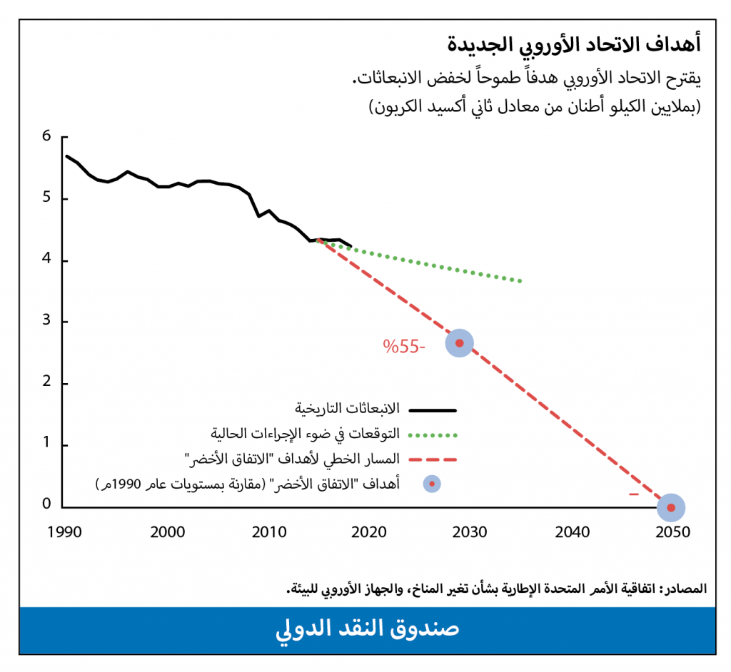 - ويأتي الاتحاد الأوروبي على رأس الدول التي وضعت أهدافاً خضراء طموحة توفر لروَّاد الأعمال الخضراء فرصاً جيدة للعمل والتقدُّم.