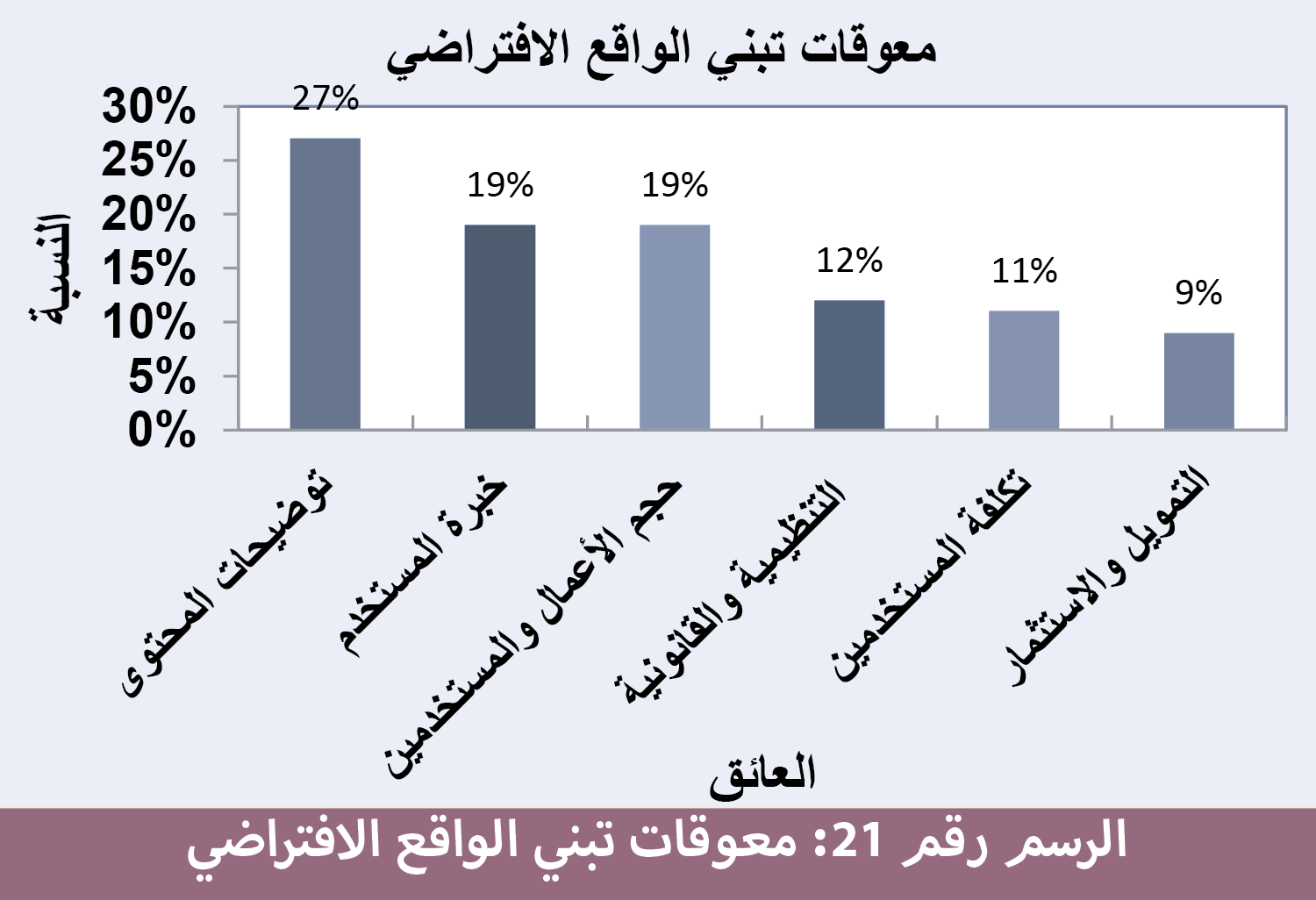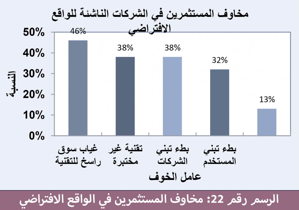 من أهم مخاوف الاستثمار في تقنية الواقع الافتراضي، عدم قيام سوق راسخة لتقنيّة الواقع الافتراضي وعدم اختبار التقنيّة وبطء تبني الشركات.