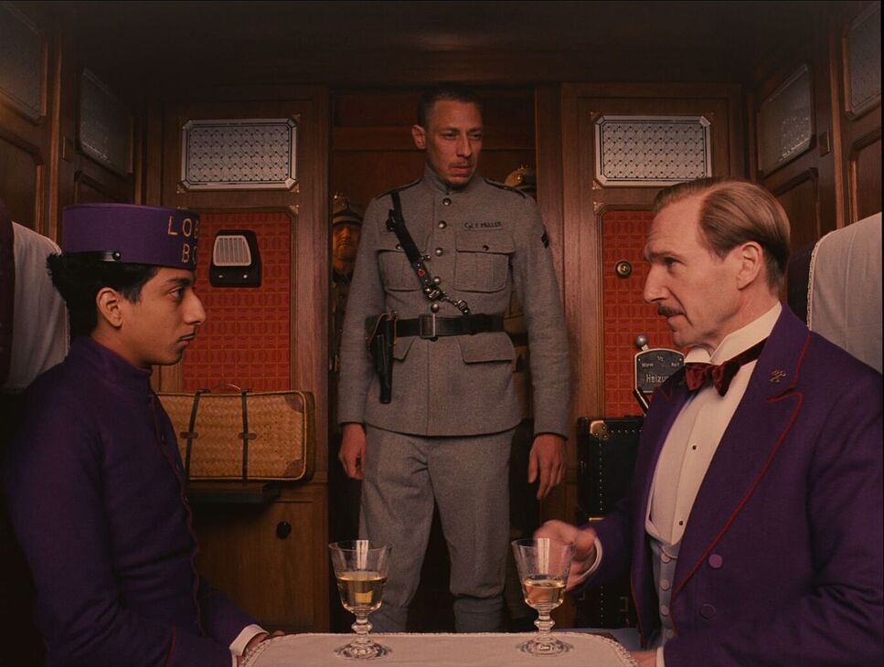 أما فلم “فندق بودابست الكبير”، فإنه يتميز بتدرجات لونية قوية وزاهية، مثل الأحمر والوردي والبنفسجي والأزرق السماوي والأصفر، وتتغير التدرجات على امتداد الفلم بحسب السرد القصصي للأحداث، ودور الشخصيات فيها. يبدأ الخط الزمني للفلم في عام 1932م، وعلى الرغم من أن تلك الحقبة الزمنية لم تكن ذات ألوان ساطعة للغاية، إلا أن تلك التي استُخدمت منحت إحساسًا خياليًا بالجمال والراحة بغض النظر عن التحديات من حولها، فبدا وكأن الفندق تمويه لإخفاء قسوة الحرب، بالنسبة للأثرياء على الأقل، في تلك الحقبة. ومن ناحية أخرى ظهرت ألوان الشخصيات بشكل جلي من خلال تخصيص الألوان الداكنة للخصوم، والرمادي للحكومة البيروقراطية، والألوان الزاهية للأبطال. وبهذه الطريقة تشكلت تدرجات اللوحة الفلمية.
