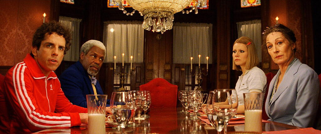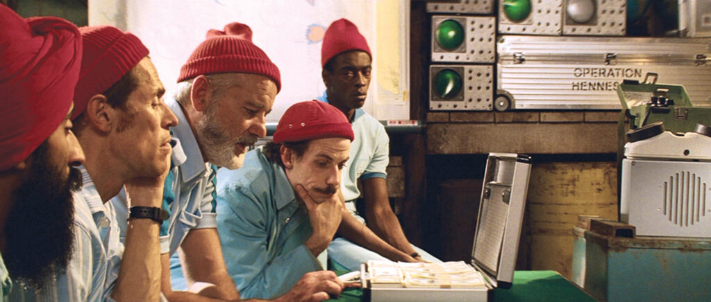 فعلى سبيل المثال، يدعم نظام الألوان الأزرق والأبيض الأجواء البحرية لفلم “الحياة المائية لستيف زيزو” (The Life Aquatic with Steve Zissou)، وتبرز القبعات الحمراء المميزة بشكل صارخ مقابل الخلفيات الزرقاء مما يؤدي إلى جذب تركيزنا باستمرار إلى الطاقم.