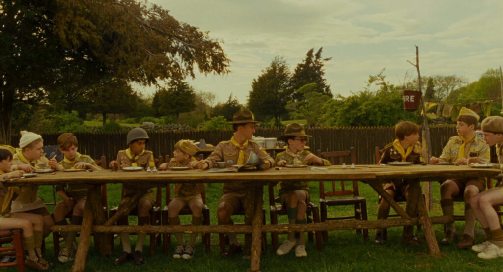 وتأليف هذه الكوادر السينمائية بدقة يحاكي رسم لوحة فنية حية، مما يدل على أن عين أندرسون الفنية مشبعة بالاطلاع على تاريخ الفن بحيث تمكنه من محاكاتها. فعلى سبيل المثال، ثمة مشهد في فلم “طلوع القمر” Moonrise Kingdom يظهر فيه عدد من فتيان الكشافة يتوسطهم قائدهم حول طاولة طعام مستطيلة. وتركيب هذا المشهد يعيد إلى أذهاننا فورًا لوحة ليوناردو دا فنشي الشهيرة “العشاء الأخير”. ولا مجال للتعامي عن صلة القربى الواضحة ما بين هذا المشهد وتلك اللوحة.