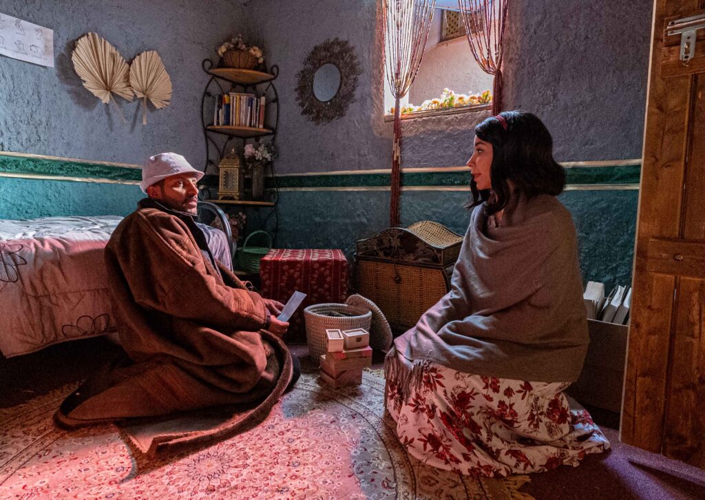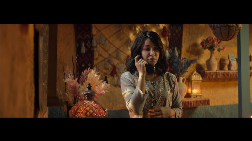 كما كانت ذاكرة مريض التوحُّد مسرفة في المتخيل، كانت بيئة المكان (القرية) متخيلة في براءتها بما تجسِّده القرية من “أحاديتها” في كل شيء. فالذاكرة الجمعية لسكان القرية تعتمد على المألوف والعادة، وهكذا كان الأب (يمثل الدور نايف خلف) لا يرى علاجًا لابنه المريض إلا في الطب الشعبي القادر على إخراج السحر والجن من ذلك الطفل. بينما كانت نافذة النور كمتعلمة هي أخت المريض (الممثلة أسيل عمران)، التي غادرت القرية للتزوُّد بالعلم، والتي تعود لتأكيد احتياج مرض أخيها إلى أطباء علم نفس، وليس إلى مشعوذين أو إلى علاج بدائي أدواته الكي والزيوت. كما أن حضور السياح الأجانب كسر أحادية القرية في رؤيتها الثابتة أو الحدية والسكون للمألوف، و“الحدوتة” هذه هي غلافا القصة من المبتدأ إلى المنتهى، وبينهما دارت قصص متداخلة لإنماء الأحداث والشخصيات مع إشارات عمد إليها المخرج لاستحضار زمنية الأحداث كجنون البقر، أو نوعية السيارات المستخدمة، أو السياح الأجانب، والإشارة الأخيرة تمنح الطفل المريض تعاملًا مختلفًا عما يجده في القرية، بمعنى اختلاف الناس في مستوياتهم المعرفية، وكيفية احتواء هذا الطفل المريض.