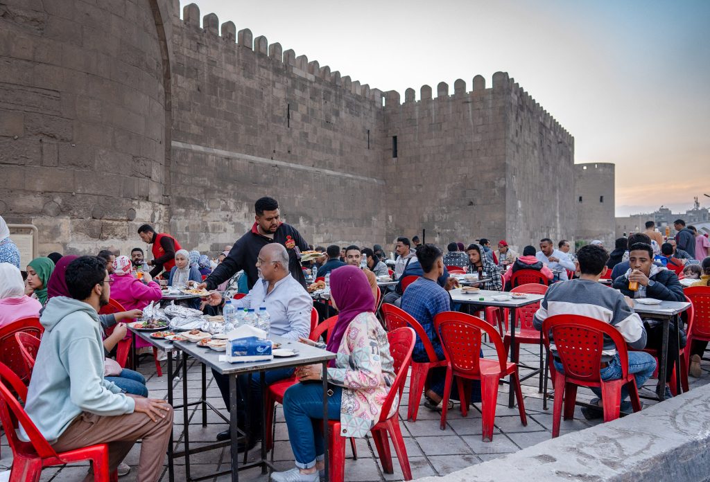 استمرار الصخب في خان الخليلي كل ليلة، من قبل الغروب إلى الشروق، يوحي بأن هناك نظامًا محكمًا للمناوبات. لكنه الولع الذي يدفع بموجات الساهرين إلى مقاهي الحي العريق ومطاعمه وحوانيته، فيُبقيه صاخبًا حتى الفجر، حيث ينسحب الساهرون بعد السحور إلى بيوتهم أو إلى صلاة الفجر في الحسين والأزهر ومساجد المنطقة الأثرية الأخرى المفتوحة للصلاة.