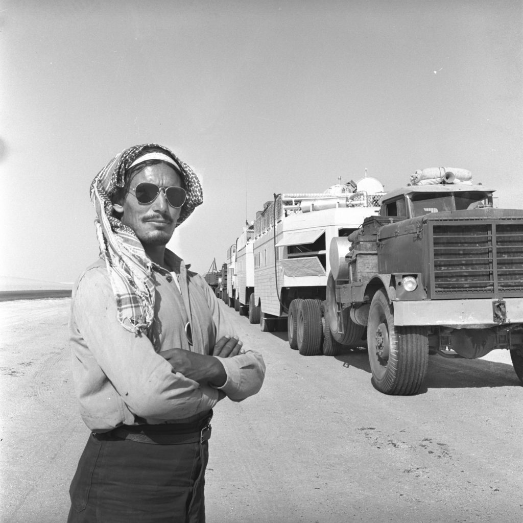 هذه القوافل هي طلائع التنقيب عن الزيت، وركبها هم كشافو الزيت الذين يُعرفون بالجيولوجيين. وهم خليط من أصحاب المهن المختلفة الذين تجمعهم في رحلاتهم هذه غاية واحدة هي البحث عن الذهب الأسود وتعيين المناطق التي تكمن في باطن أراضيها هذه الثروة.