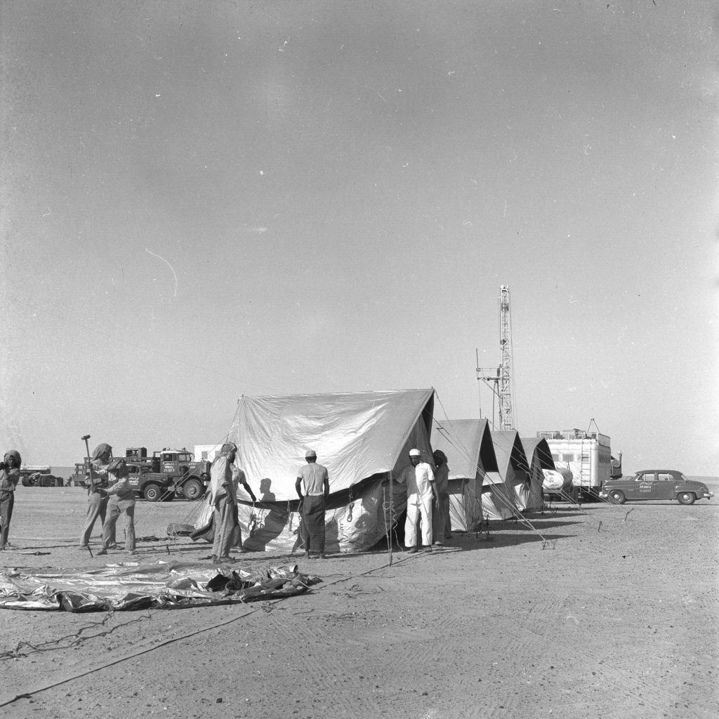 أما غاية هذه الفرق فهي السعي للاهتداء إلى المناطق وتعيين الأراضي التي يتجمع هذا السائل الثمين تحت طبقاتها. ولذلك فإن كل فرقة تتجه وجهة معينة تحددها لها رئاسة إدارة التنقيب بموجب برنامج الموضوع. إلا أن معظم عمليات التنقيب هذه تتركز في المنطقة الواسعة المعروفة بالربع الخالي، والتي تبعد عن الظهران ما لا يقل عن 300 ميل تجاه الجنوب. ولكن كيف يستطيع هؤلاء تمييز الأراضي التي قد تحتوي على الزيت من غيرها؟ الواقع أن الإجابة على هذا السؤال إجابة وافية، لا تتيسر إلا لذوي الاختصاص ممن مارسوا هذه المهنة سنين عديدة متواصلة، وأصبحت لديهم خبرة وافرة. غير أننا سنحاول في هذه العجالة أن نبين للقارئ الكريم في أسلوب مبسط المراحل الرئيسية لعملية التنقيب عن الزيت.