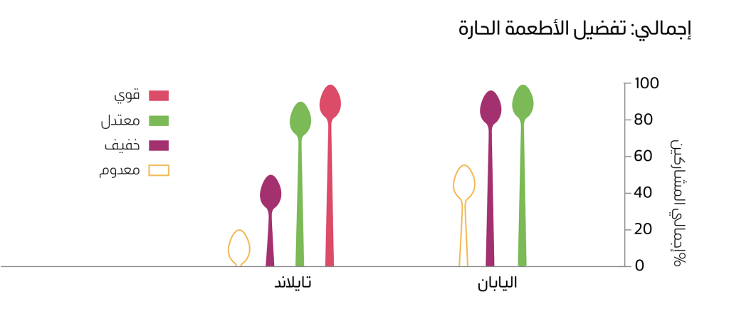 وكانت مجلة “الحواس الكيميائية” العلمية قد رصدت في عددها الصادر في 25 ديسمبر 2017م، نتائج دراسة حديثة حول التذوُّق في الثقافتين التايلاندية واليابانية، تبيّن من خلالها وجود اختلافات كبيرة في مُتوسّطات درجات فئات المذاق الخمس بين البلدين، تجعل نحو %70 من التايلانديين يُفضّلون الأطعمة الحارة، في حين يُفضّل أكثر من %90 من اليابانيين الأطعمة الخفيفة غير الحارة. وبينما يبدو مزيج الطماطم والثوم والأوريجانو وزيت الزيتون إيطاليًا بامتياز، نجد الجمبري المُجفف والفلفل الحار والزنجبيل وزيت النخيل طعامًا مُفضلًا في البرازيل. أمّا الألمان فلا تخلو أطباقهم المُفضّلة من القشدة الحامضة والخردل والخل والشبت والفلفل الأسود. ولا يختلف المذاق المُفضّل عند الأمم والشعوب فقط، وإنما يمتد اختلافه إلى الذوق الفردي أيضًا. فليس كُل الناس سواسية في درجة تذوُّقهم للطعام؛ إذ هناك من يُطلق عليهم أصحاب الحساسية المُتزايدة للمذاق، أو “المُتذوّقون الفائقون”.