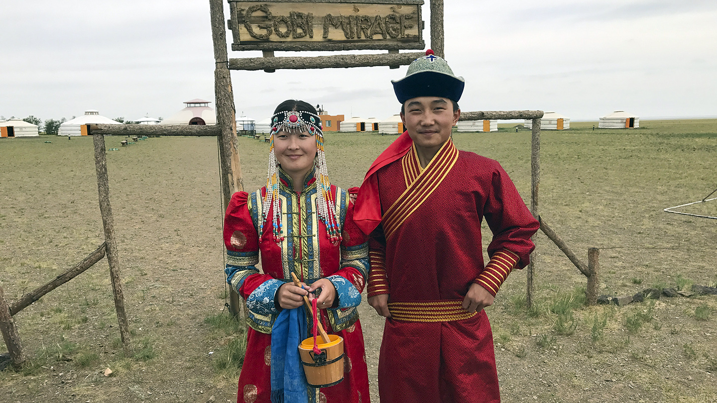خلال تجوالنا بين كثبان صحراء جوبي، دعتنا عائلة مغولية تمتلك قطعانًا من الجمال إلى خيمتها الرئيسة. جلسنا في القسم الأيسر المُخصص للضيوف، وقدَّم لنا رب الأسرة عطرًا قويًّا وفق الطقوس: وضع كفّ يده اليسرى تحت كوعه الأيمن، ماسكًا العطر بيمينه مع انحناءة خفيفة للأمام، وهي إيماءة تُعبّر عن الاحترام المُطلق للضيف. وكما تعلَّمنا مسبقًا، استلمنا العطر بالحركة الدقيقة نفسها، وشممناه باحتراس قبل إعادته إليه. ثم أخذنا كوب الشاي المغولي المميّز بالطريقة نفسها، مع حرصنا على عدم لمس يد المضيف مباشرة كعلامة على التواضع. شربنا منه قليلًا قبل وضعه على الطاولة، بحسب التقاليد المغولية التي لا يجوز كسرها مهما تطلب الأمر.