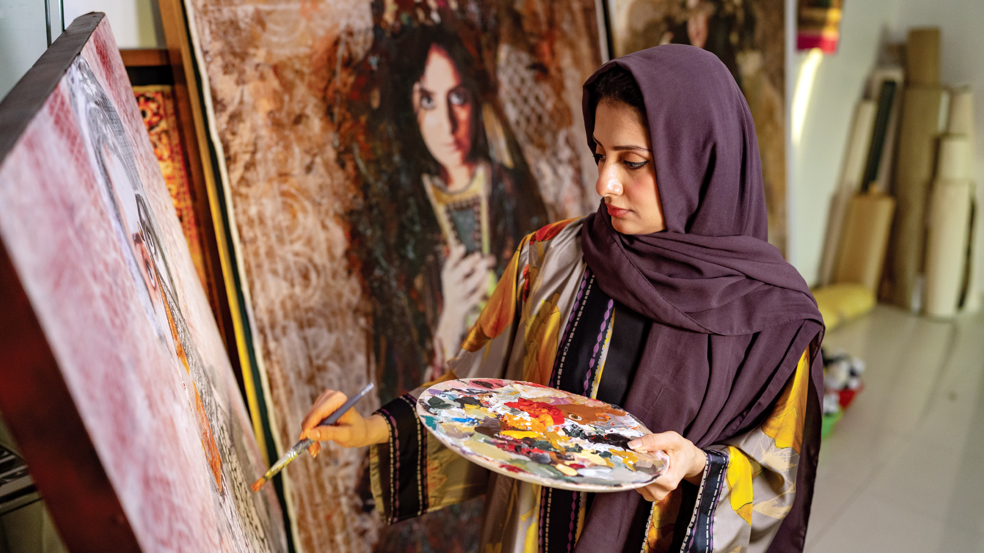 وكانت أول فناني القافلة لهذا العام هي السعودية منال الضويّان، التي استخدمت الفن أداةً للتدوين؛ ثم النحات العُماني أحمد الشبيبي، الذي أولى التجريد اهتمامًا كبيرًا في أعماله؛ مرورًا بالفنان البحريني عباس الموسوي، الذي تراوحت أعماله بين الانطباعية والتعبيرية والتجريدية؛ وصولًا إلى الفنان السعودي راشد الشعشعي، الذي سخّر معرفته العميقة بالمادة لصالح فنه؛ ثم الفنان المصري عمر الفيومي، الذي استلهم لوحاته من الطقوس اليومية للناس البسطاء، وختامًا بالفنانة السعودية فاطمة النمر، التي استلهمت من الذاكرة الشعبية لوحاتها الفنية.