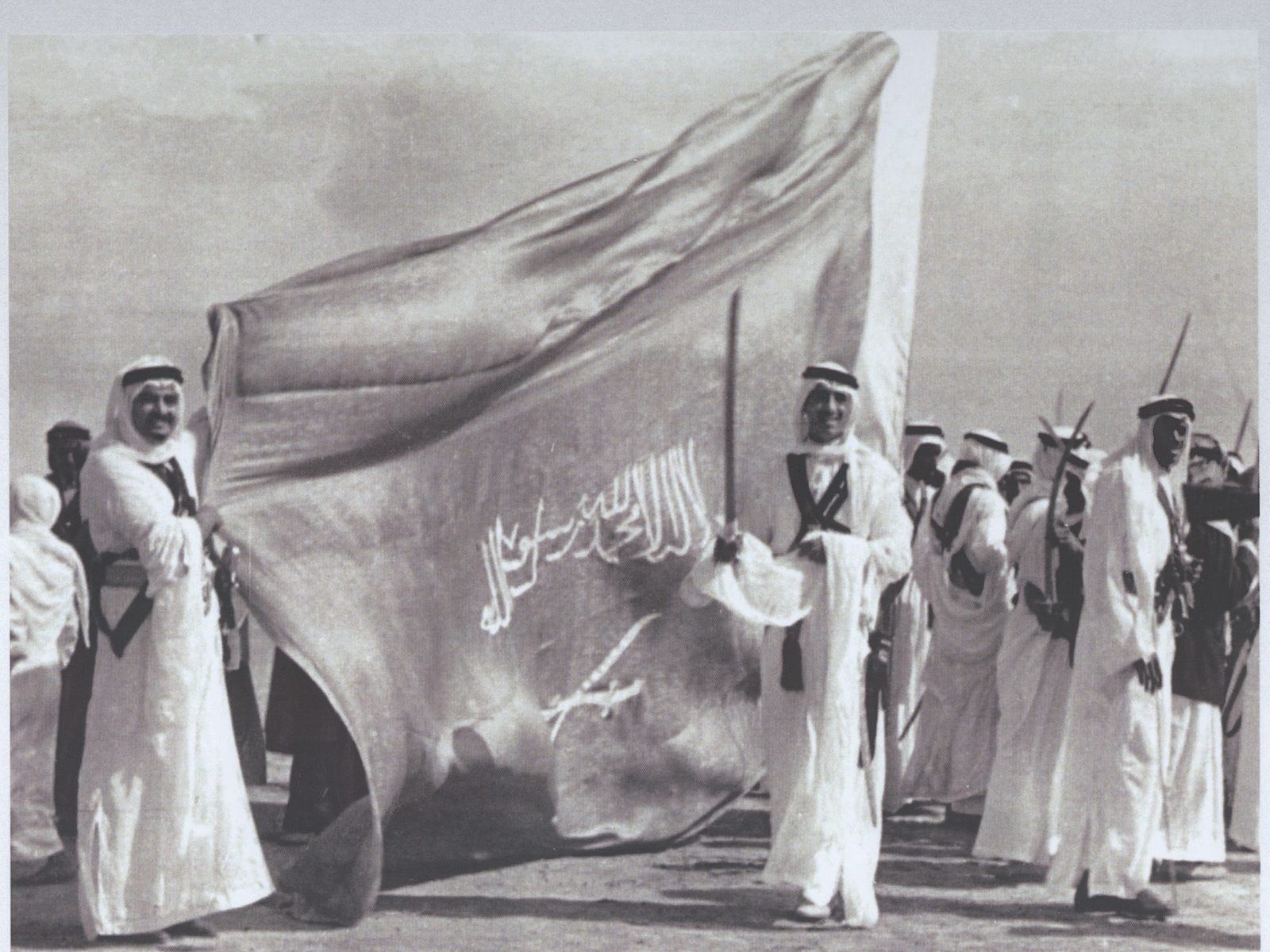 اجتمع السعوديون كما اجتمع آباؤهم من قبلهم مبايعين أئمتهم تحت الراية نفسها، الراية المصنوعة من الإبريسم الأخضر المنسوج عليها عبارة التوحيد، فكان أن قامت الدولة مرة أخرى، ورفرفت رايتها خفّاقة.