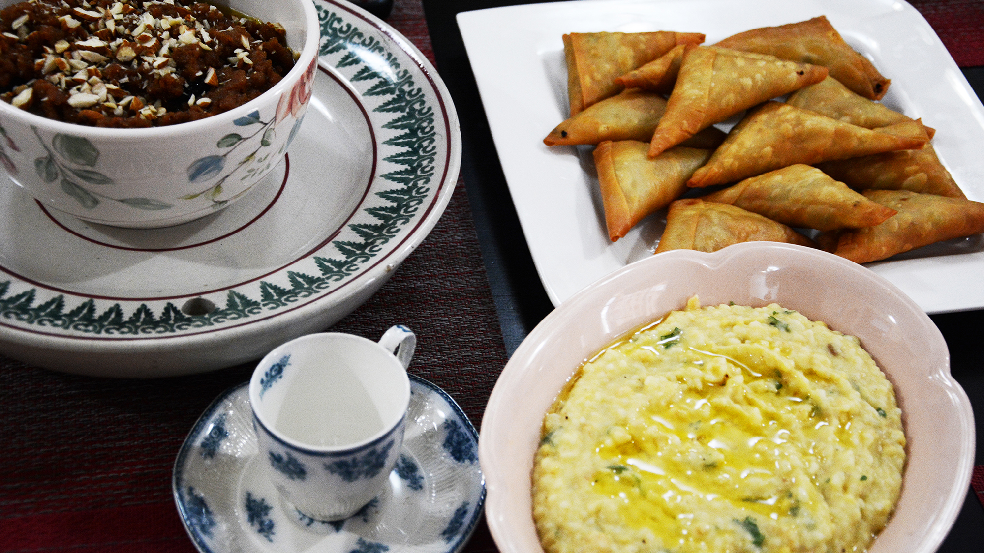 أطباق السمبوسة والبوري الشهيرة، وهي من الأطباق الرئيسة على مائدة الإفطار.