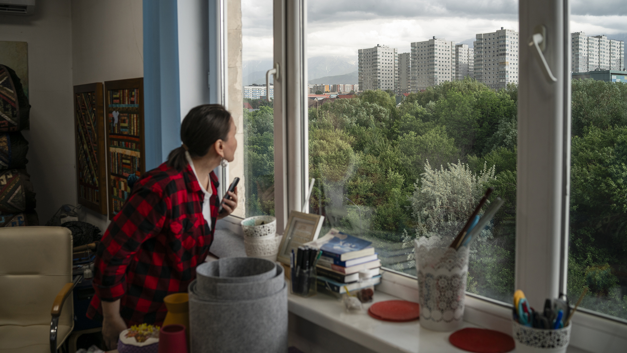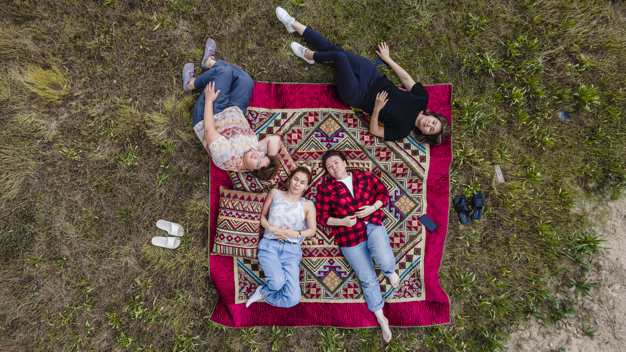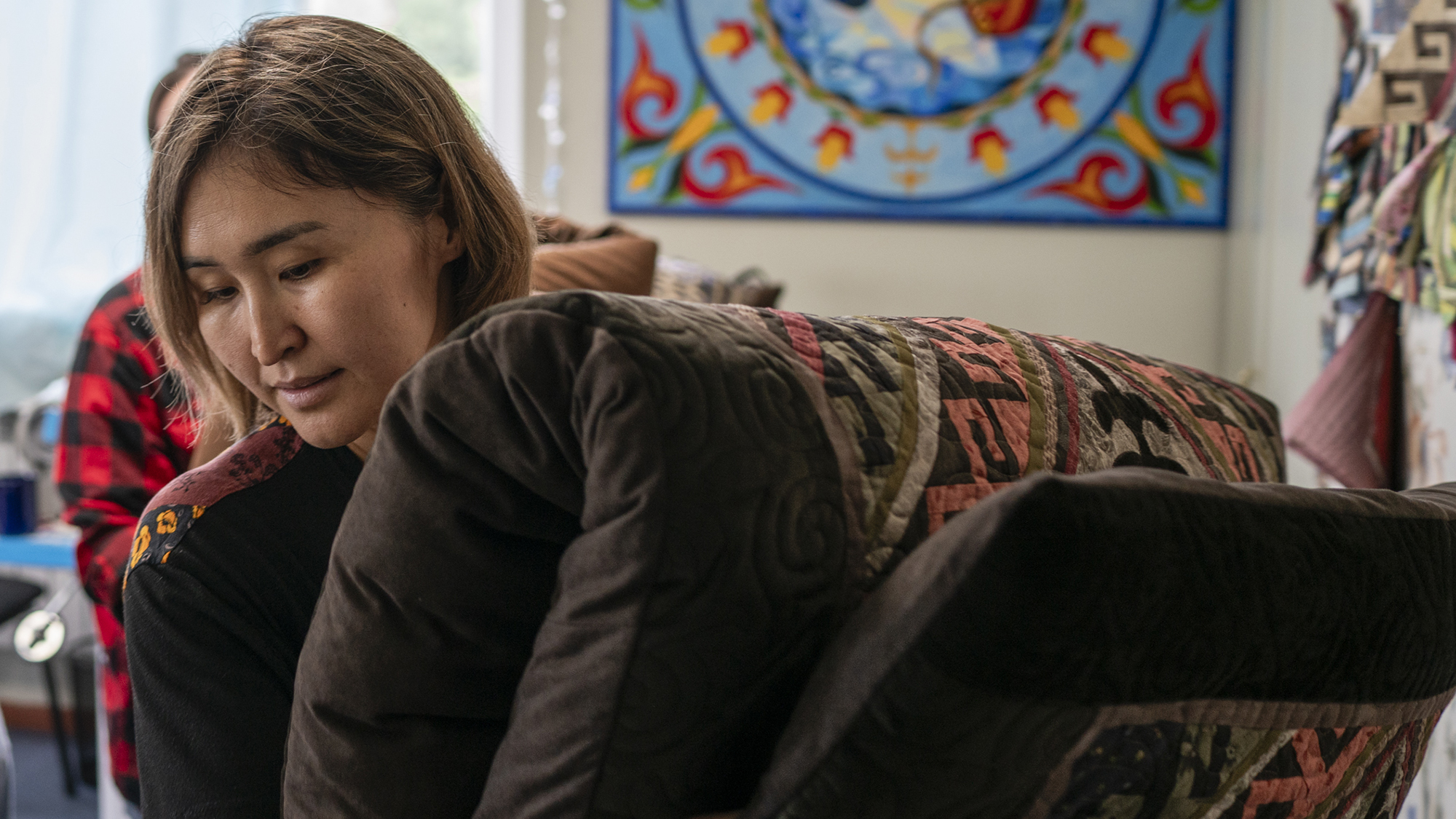 من داخل استوديو يطل على سفوح سلسلة جبال زايليسكي ألاتاو بالقرب من مدينة ألماتي في كازاخستان، تعمل ثلاث نساء بهدوء على قطعتهن الفنية؛ بطانية مصنوعة بطريقة الكوراك، وهي الحرفة التراثية الكازاخية لفن حياكة الرُّقَع القماشية. وهؤلاء العاملات تدرّبن على يد خبيرة في فن الكوراك ومؤسسة مدرسةٍ مخصصة لإعادة إحياء هذا الفن.