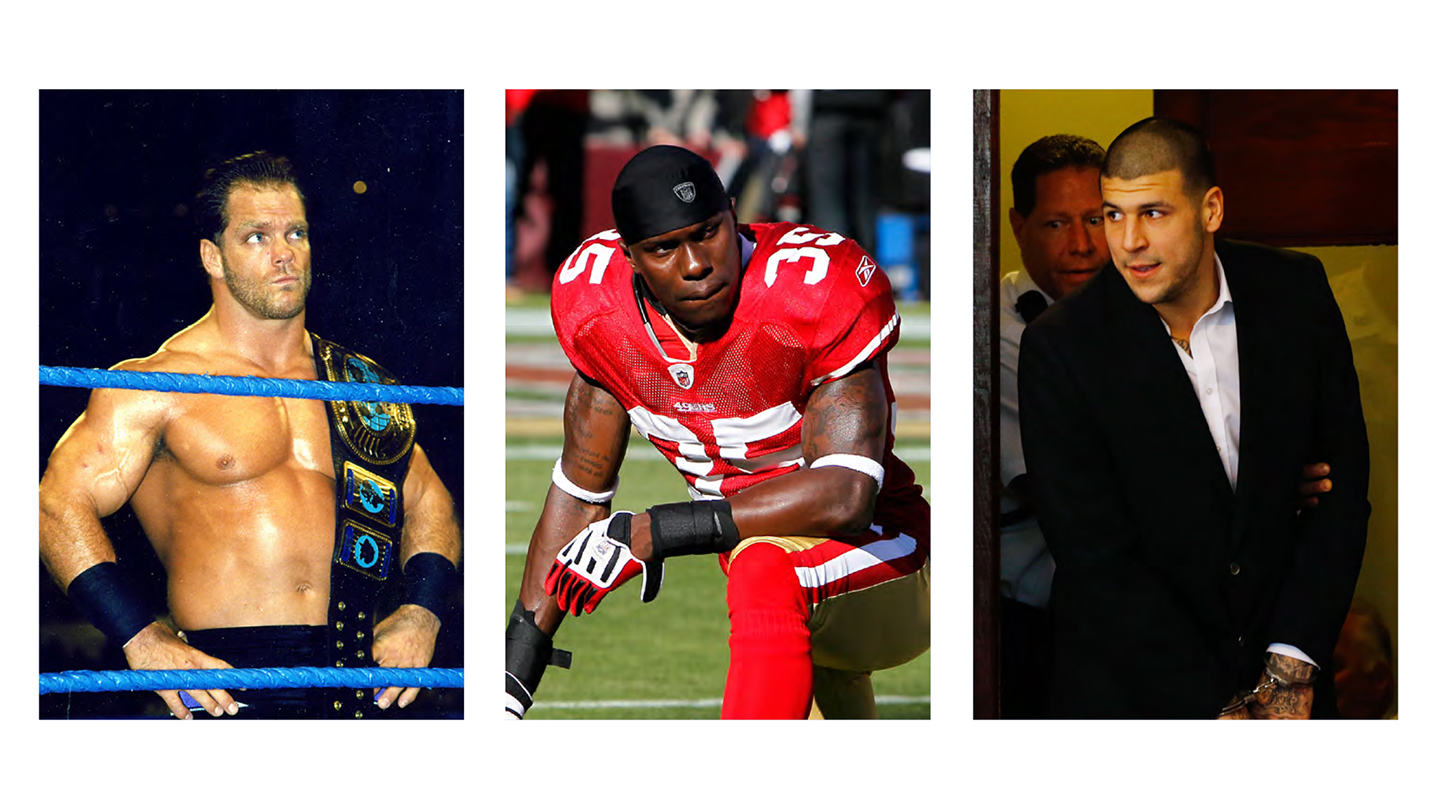 من اليمين: آرون هيرنانديز، فيليب آدامز، كريس بنوا.