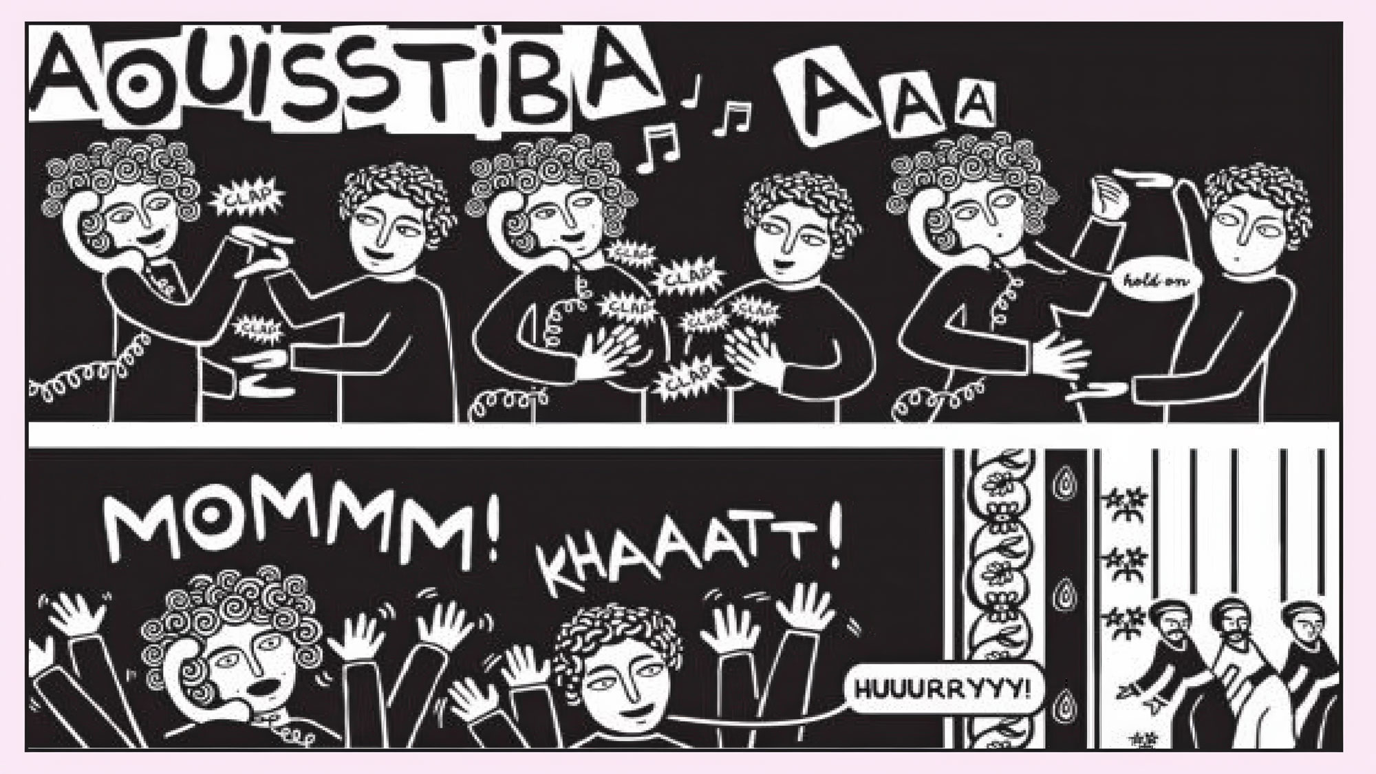تجري أحداث الراوية في إحدى ليالي الحرب الأهلية اللبنانية، عندما كانت "زينة" وشقيقها طفلين، وكانا ينتظران عودة والديهما من بيروت الغربية في أثناء تجمع أهل البناية (كما اعتادت سائر العائلات فعل ذلك في سنوات الحرب الخمسة عشر). تتشابه زينة ومرجان كثيرًا، كلاهما تكتب رواياتٍ مصوّرة سِيَرية، ولكن من خلالها تَعبُران إلى السرديات الكبرى التي تخص الوطن والحرب والحنين؛ وكلتاهما أيضًا تكتب القصة على مستوًى يفتقر إلى العمق الذي يتطلبه الموضوع. ولعل ذلك ما يجعل أعمالهما مواد مرغوبة لدى الناشر الفرنسي، إذ تتماشى هذه الخطابات النقدية مع ما يريده الناشر والمتلقي الفرنسي، لأنها تتفق مع الصور النمطية المرسومة في أذهانهم حيال مجتمعات الشرق الأوسط، إلى جانب سهولة تسويقها.