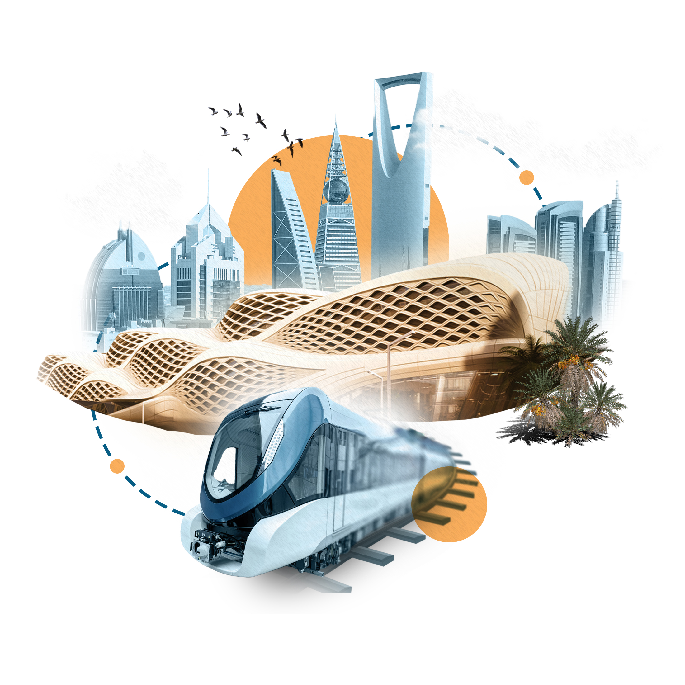 بضخامته، يشكِّل مشروع الملك عبدالعزيز للنقل العام في الرياض منعطفًا حادًا في مسيرة تطوير المدينة يعد بنقلها من حال إلى حال. فقد عمل المهندسون ومخططو المدن في الهيئة الملكية لمدينة الرياض على تخطيط هذا المشروع وتصميمه وبنائه في العاصمة بوصفه نظام نقل حضريًا يتكوَّن من ستة خطوط للقطار تتكامل تمامًا مع شبكة حافلات متطورة تدعم احتياجات التنقل لسكان المدينة البالغ عددهم سبعة ملايين نسمة والأعداد المتزايدة من الزوار، والسياح المحليين والدوليين، وتغطي كامل مساحة منطقة الرياض الحضرية البالغة 1,550 كيلومترًا مربعًا تقريبًا.