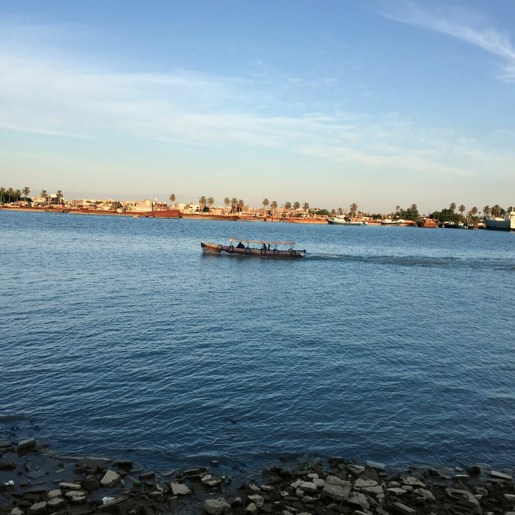 على هدير السفن الغاربة والوافدة، وصدى صخبها المتصل، كان أهالي محلة “منّاوي باشا”، وسط البصرة، يضبطون إيقاع أيّامهم، فالشط على مرمى حجر. وأمام منظر عبورها الأبدي، تخفق على سواريها أعلام دول الشرق والغرب، ويتألق فوق سطوحها وعد حياة لما تكتشف بعد، كان صبي الضفّة يبذلُ ساعاته مستجيباً لنداء المدينة العميق.