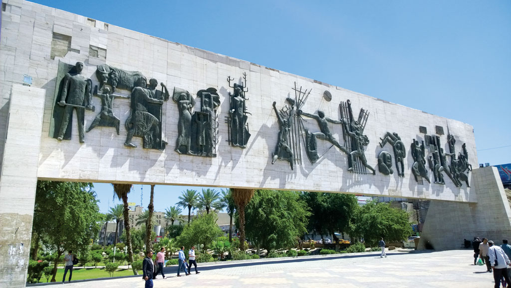 وقع الاختيار على ساحة التحرير كمكان لتشييد النصب، وكان قلب بغداد قد تحدَّد بصورة تامة. فالساحة مفتوحة مباشرة على جسر الجمهورية، وملاصقة تقريباً لنهر دجلة، وإن كانت في زاويتين مخفيتين تقريباً على تماس مع شارعي أبو نواس وشارع الرشيد، أحد أهم وآخر شوارع الحقبة العثمانية بطرازه الفريد. وفي الاتجاهات الثلاثة الباقية، تنفتح الساحة على شارع السعدون، حيث دُور المسرح والسينما والمكتبات والحياة الثقافية والفنية، وفي الجهة المقابلة شارع “الملك غازي” الذي أصبح شارع الجمهورية، وفي الجهة الأخيرة حديقة الأمة.
