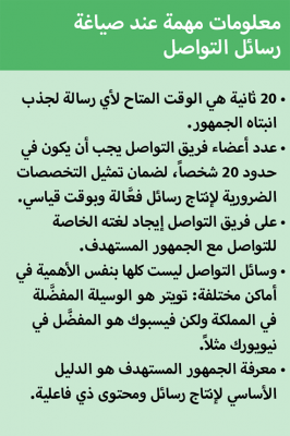 وكان محور نقاشها مع المشاركين، التساؤل عن كيفية إيصال رسالة محدَّدة إلى الجمهور المستهدف. فالوسيلة الأفضل للتعامل مع الجيل الجديد مثلاً هي استخدام وسائل التواصل الاجتماعي الأقرب إلى الجماهير مثل إنستاغرام أو تويتر أو فيسبوك.